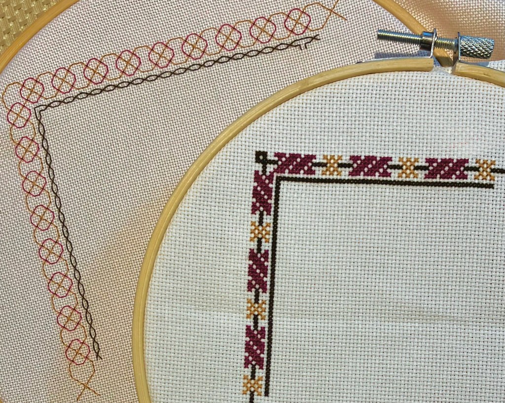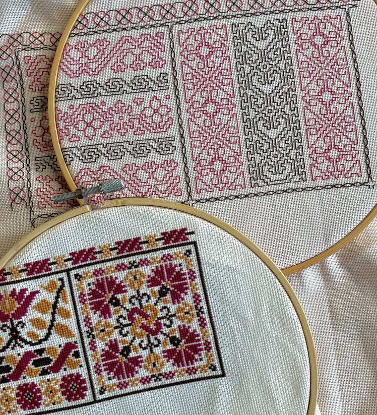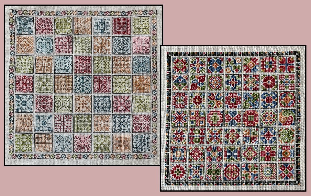My Cross-Stitch Tiles, Egyptian Blackwork Squares, Cross-Stitch Collages, Blackwork Collages, Cross Stitch Bands & Boxes, Blackwork Bands & Boxes, Cross Stitch Floral Bands, Blackwork Floral Bands, and Heritage Motifs Cross Stitch and Blackwork SALs have ended. Patterns for the complete projects are now available in my Etsy shop.